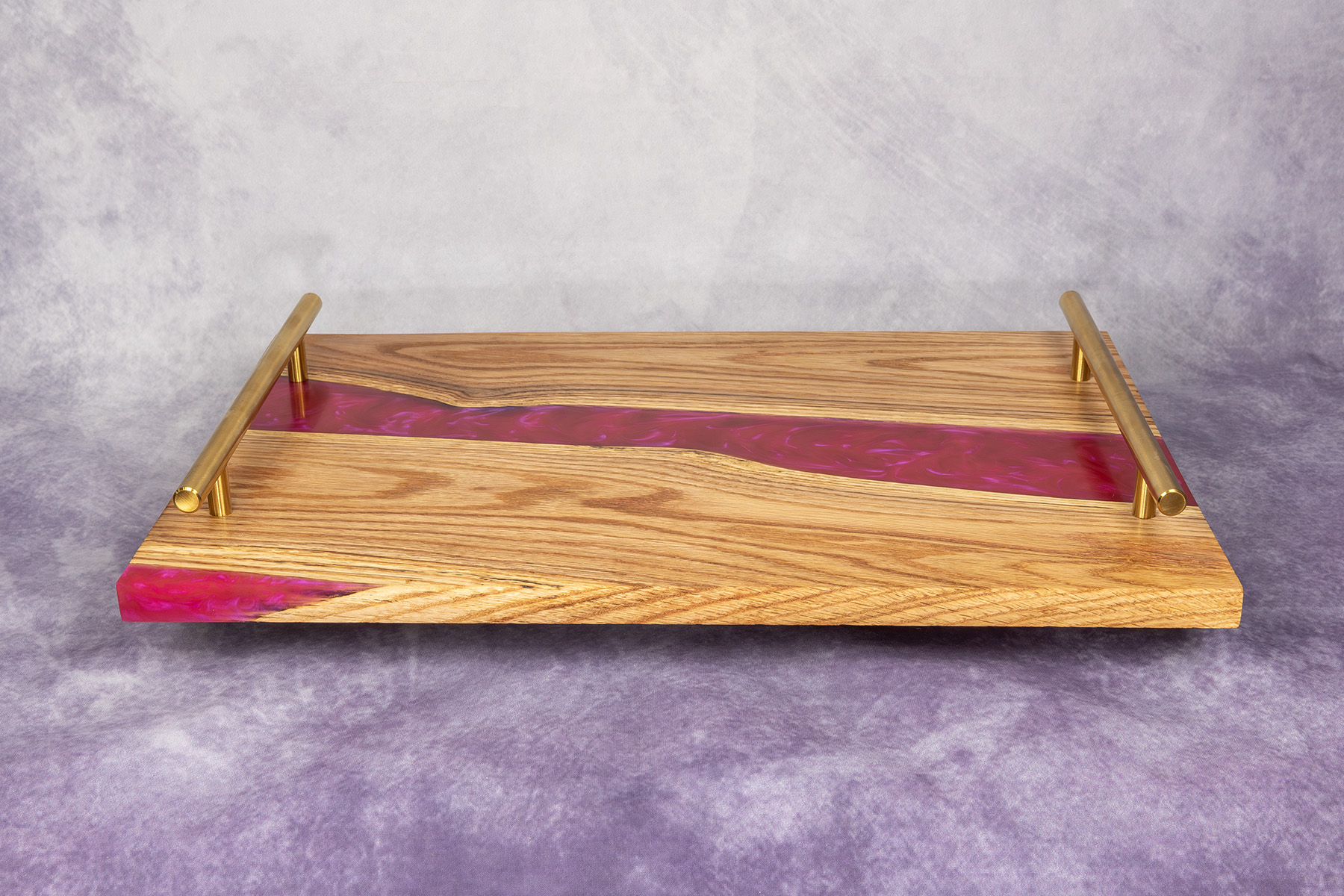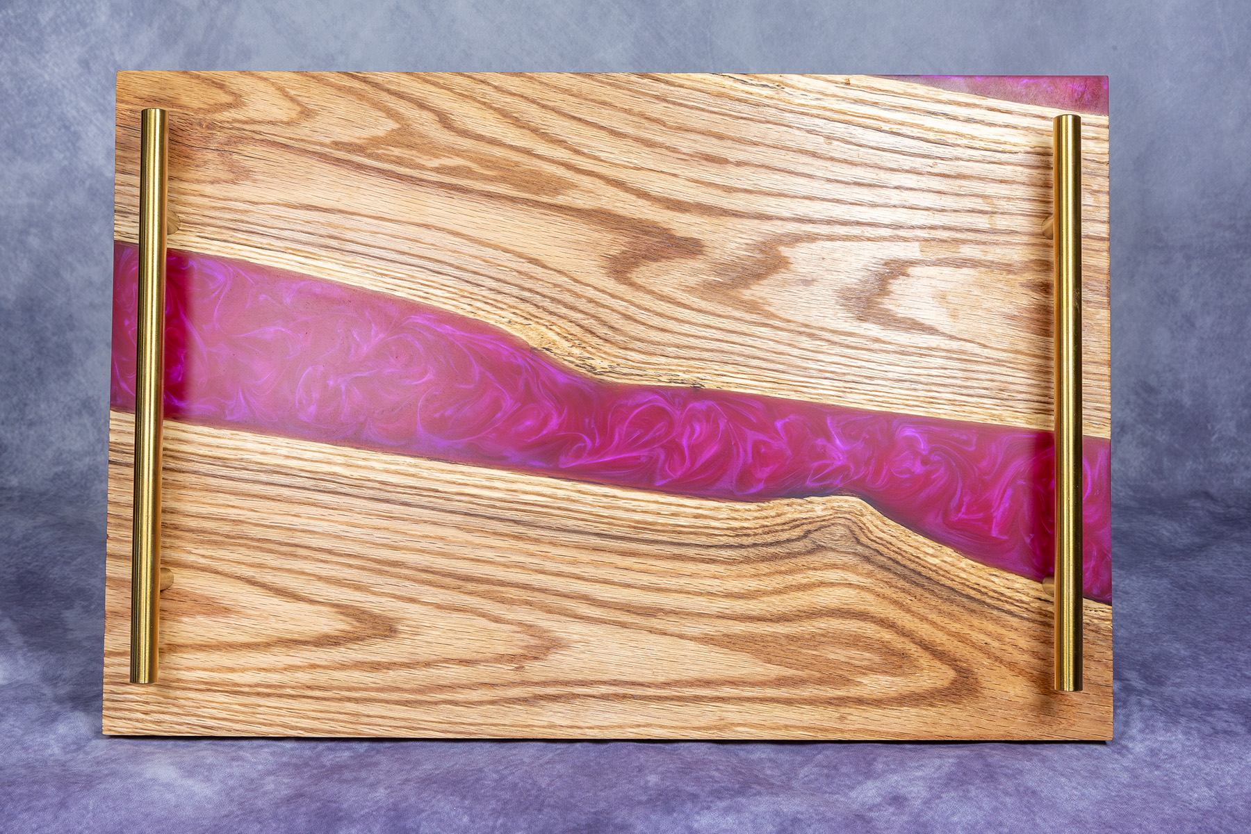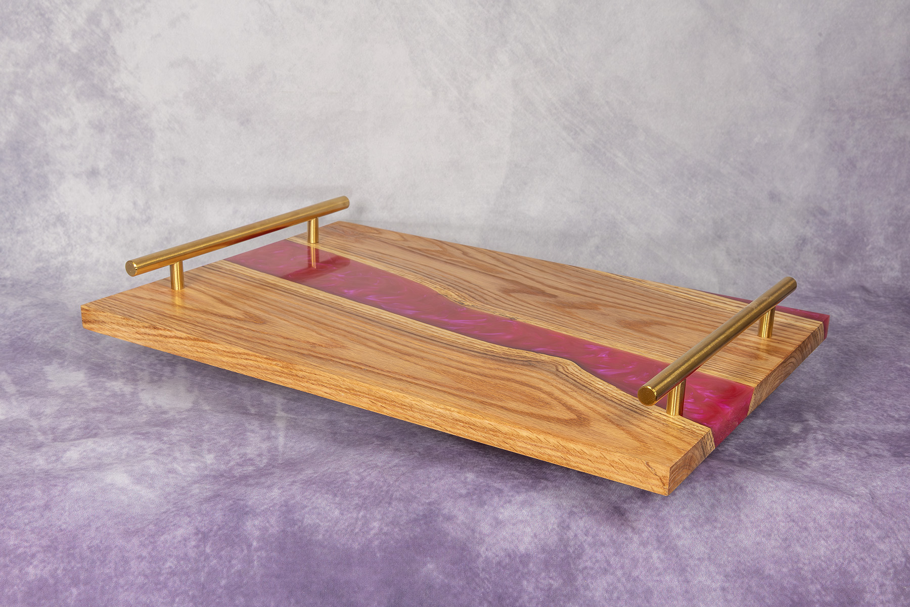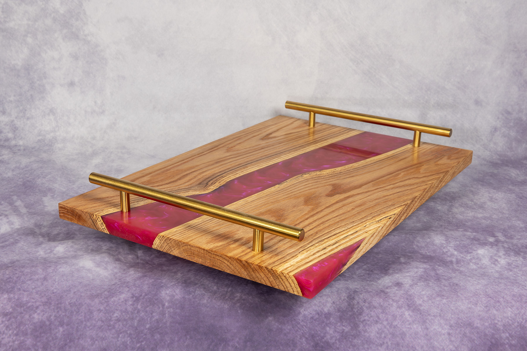 Taca / Deska do serwowania „Pink River” – Dąb i Ciemnoróżowa Żywica Epoksydowa