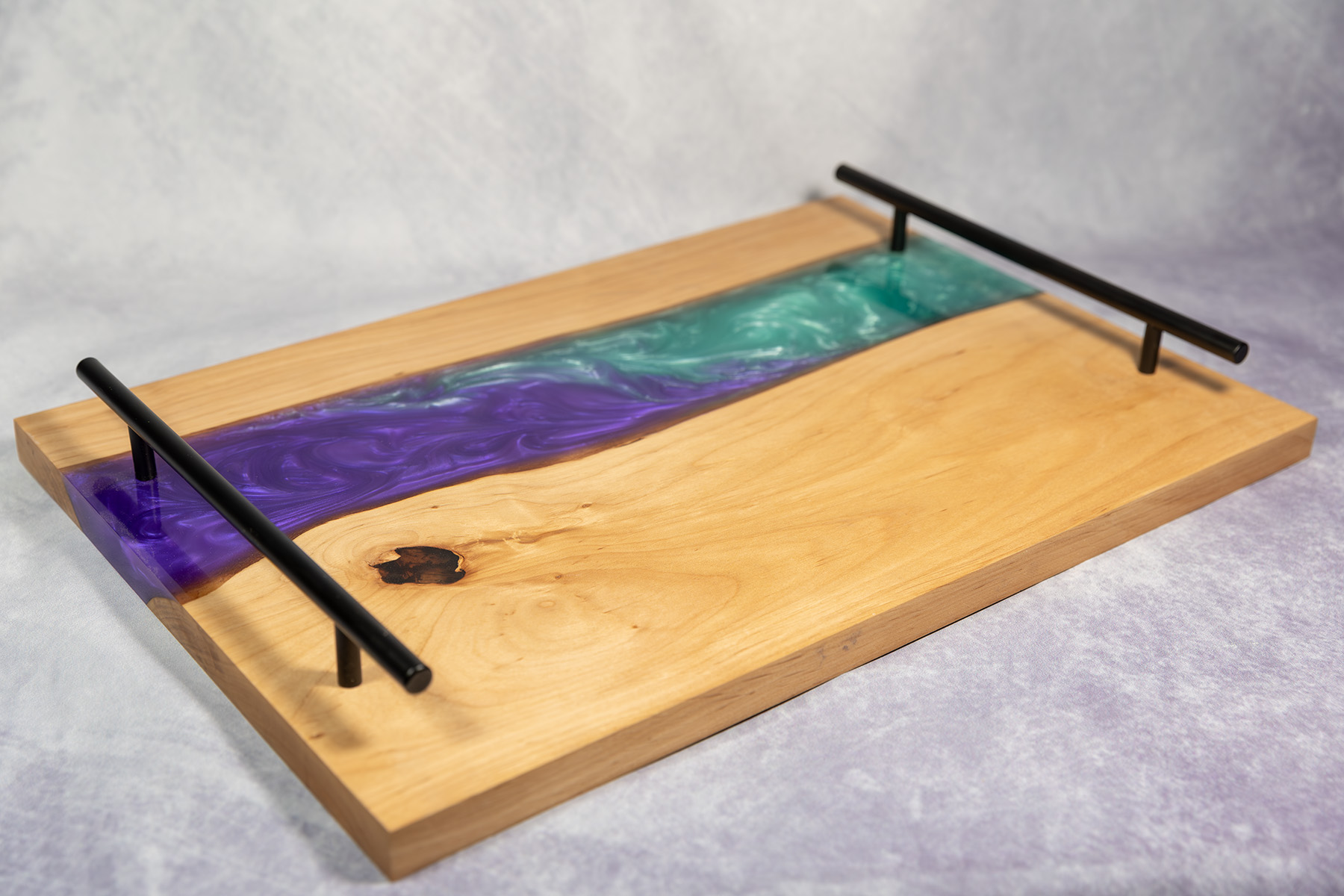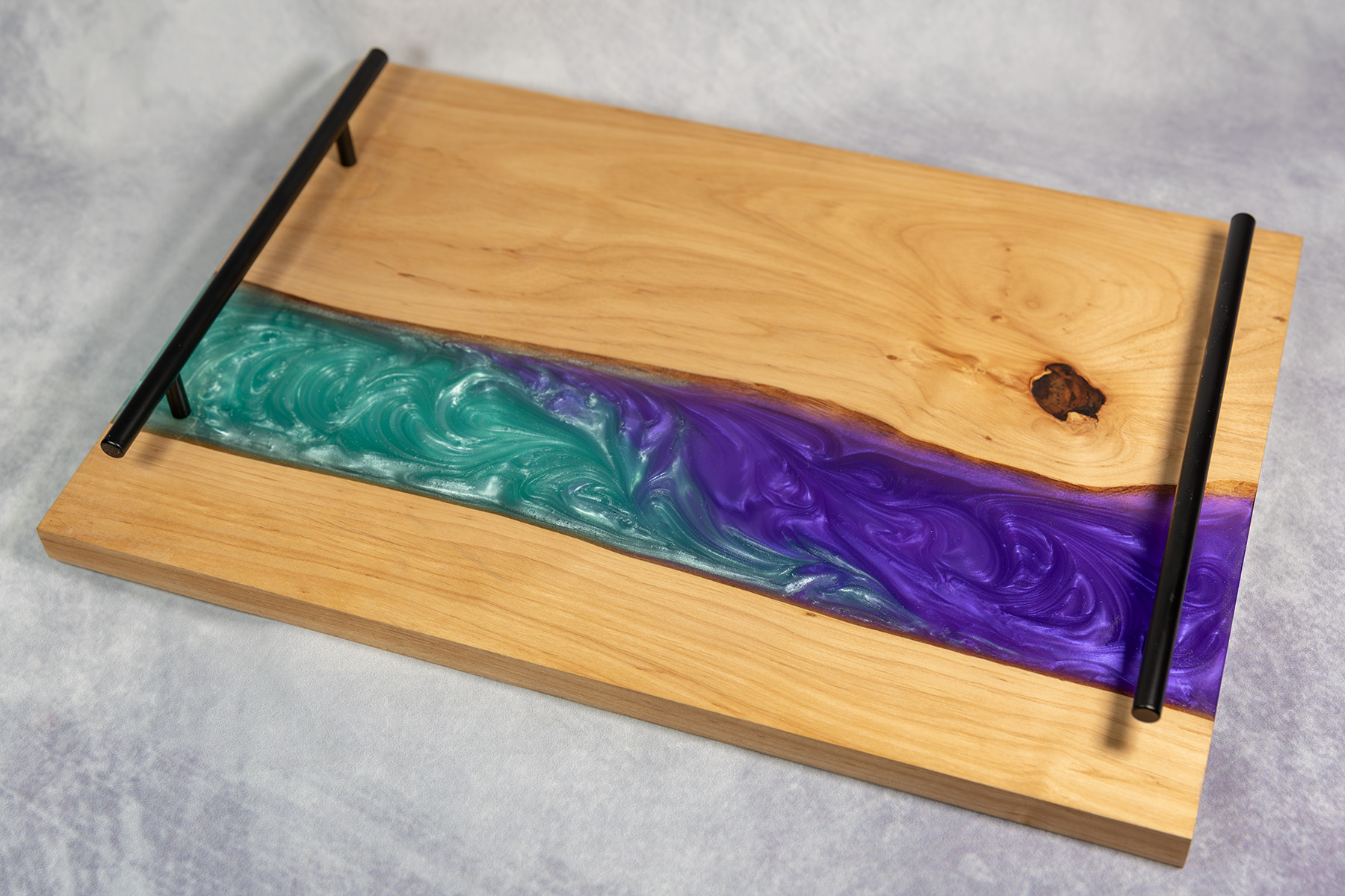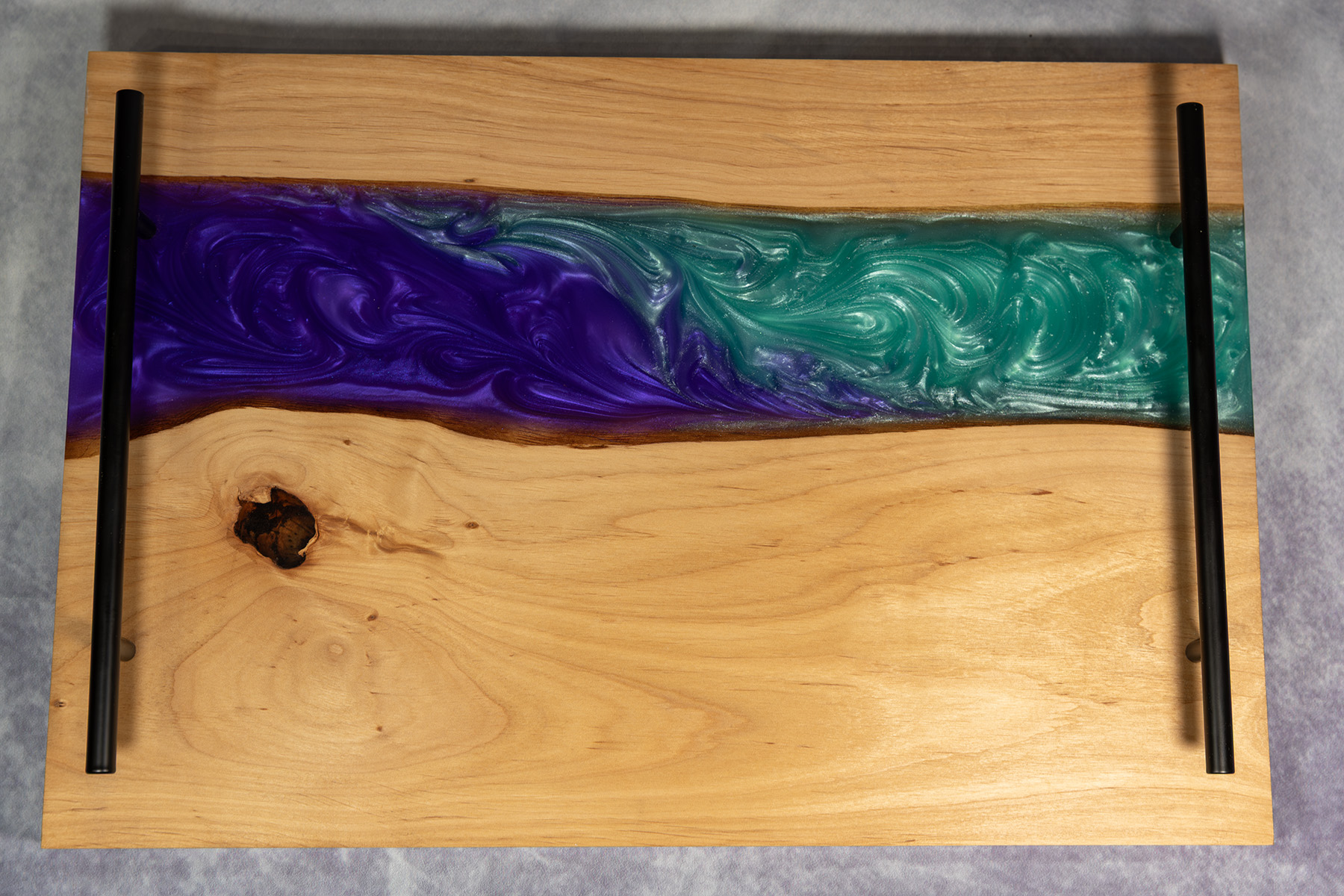 Taca / Deska do serwowania „Mix Colours River” – Olcha i Niebieska Żywica Epoksydowa
