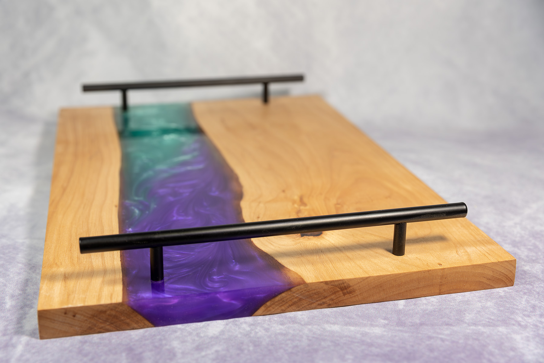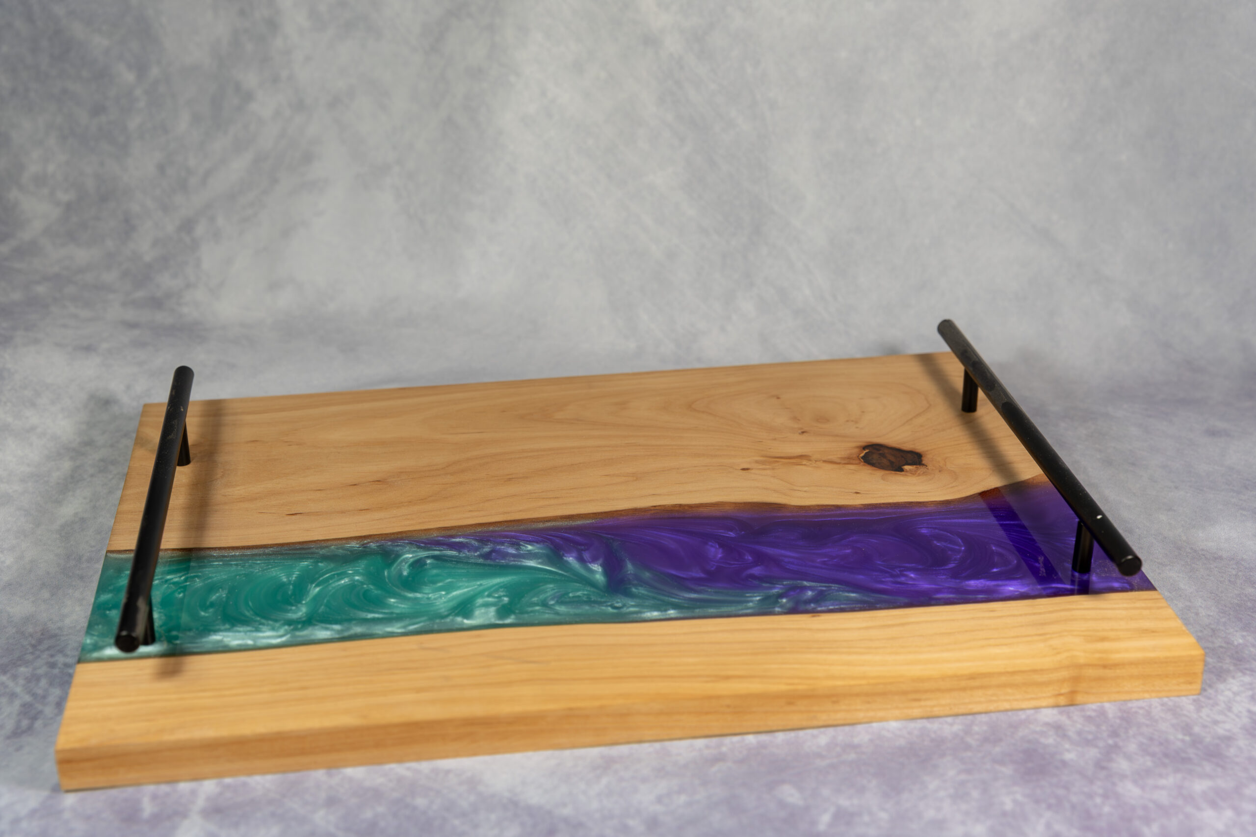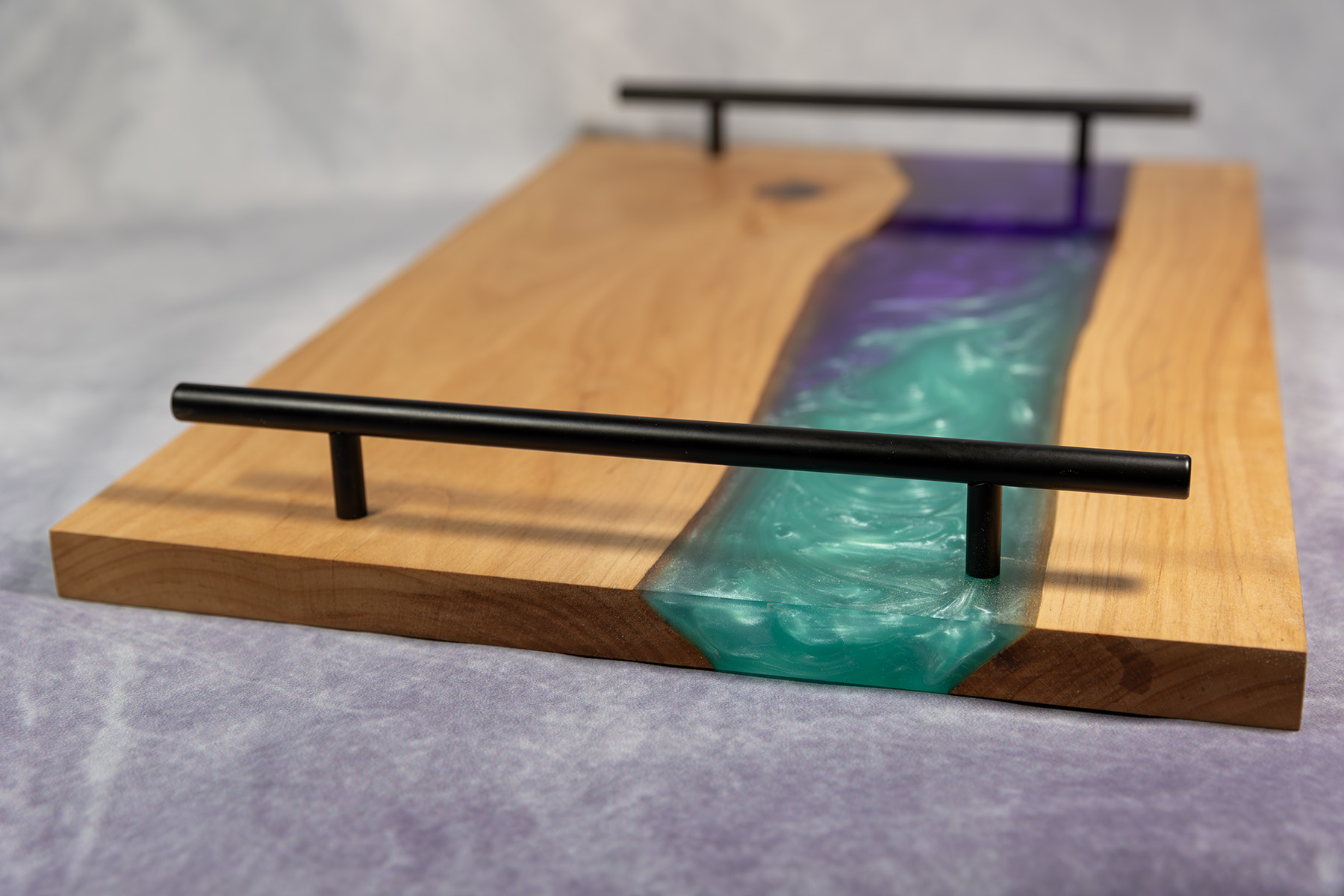 Taca / Deska do serwowania „Mix Colours River” – Olcha i Niebieska Żywica Epoksydowa
