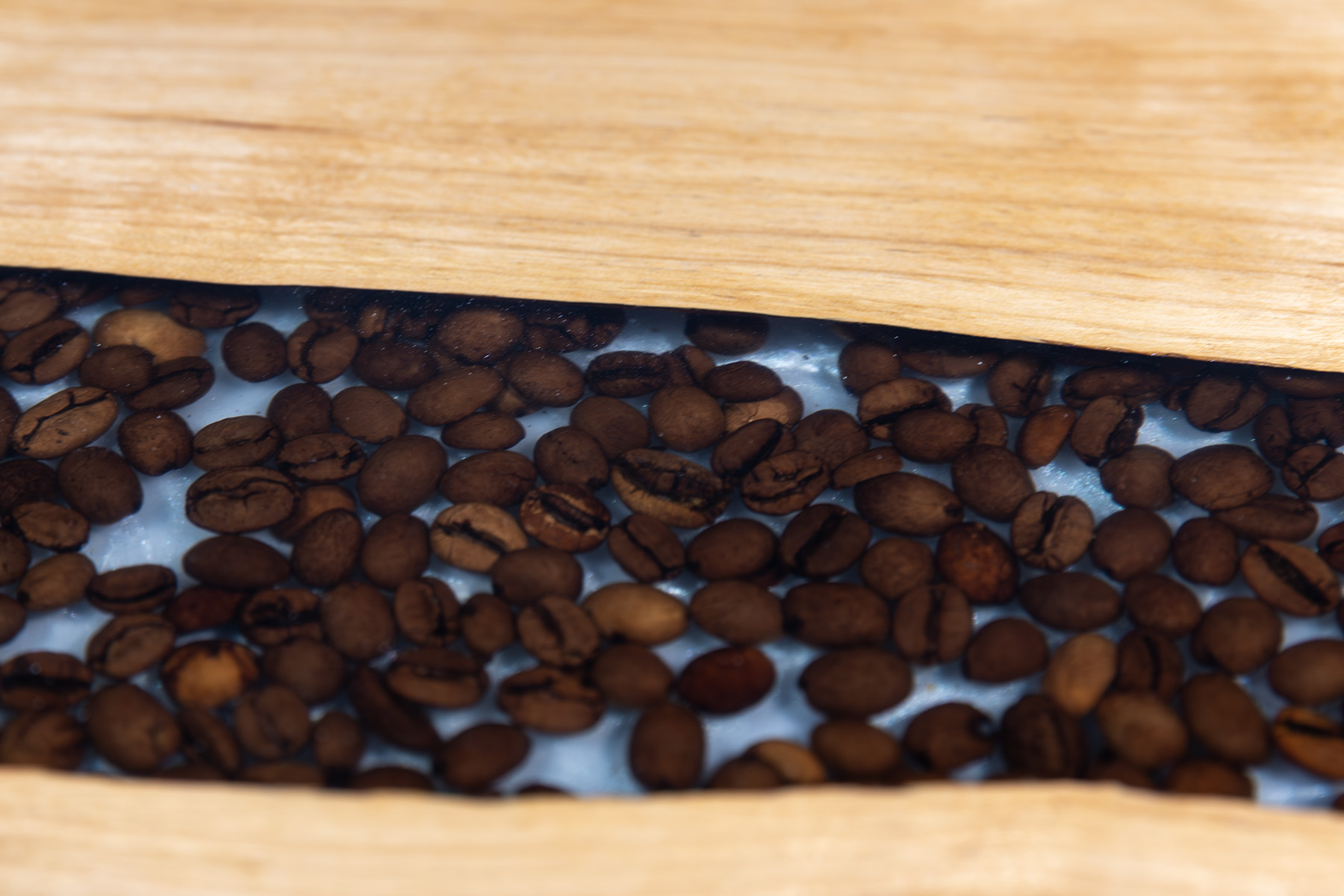 Wyjątkowa kompozycja natury i nowoczesnego designu. Lite drewno olchowe spotyka się z głęboką, bezbarwną żywicą epoksydową z zatopionymi w niej ziarnami kawy, tworząc efekt rzeki zamkniętej w szlachetnej formie. Każda deska jest unikatowym egzemplarzem – rysunek słojów, naturalne detale drewna oraz struktura żywicy sprawiają, że nie istnieją dwa identyczne modele.