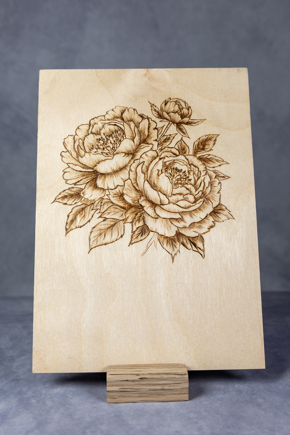 - technika wykonania: ręczna pirografia (wypalanie w drewnie)