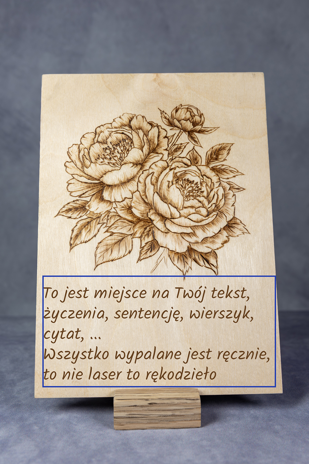 Wyjątkowa, ręcznie wykonana tabliczka okolicznościowa w formacie A5 (148x210mm) Ozdobiona eleganckim motywem kwiatowym z peoniami, które nadają jej romantyczny i ponadczasowy charakter.